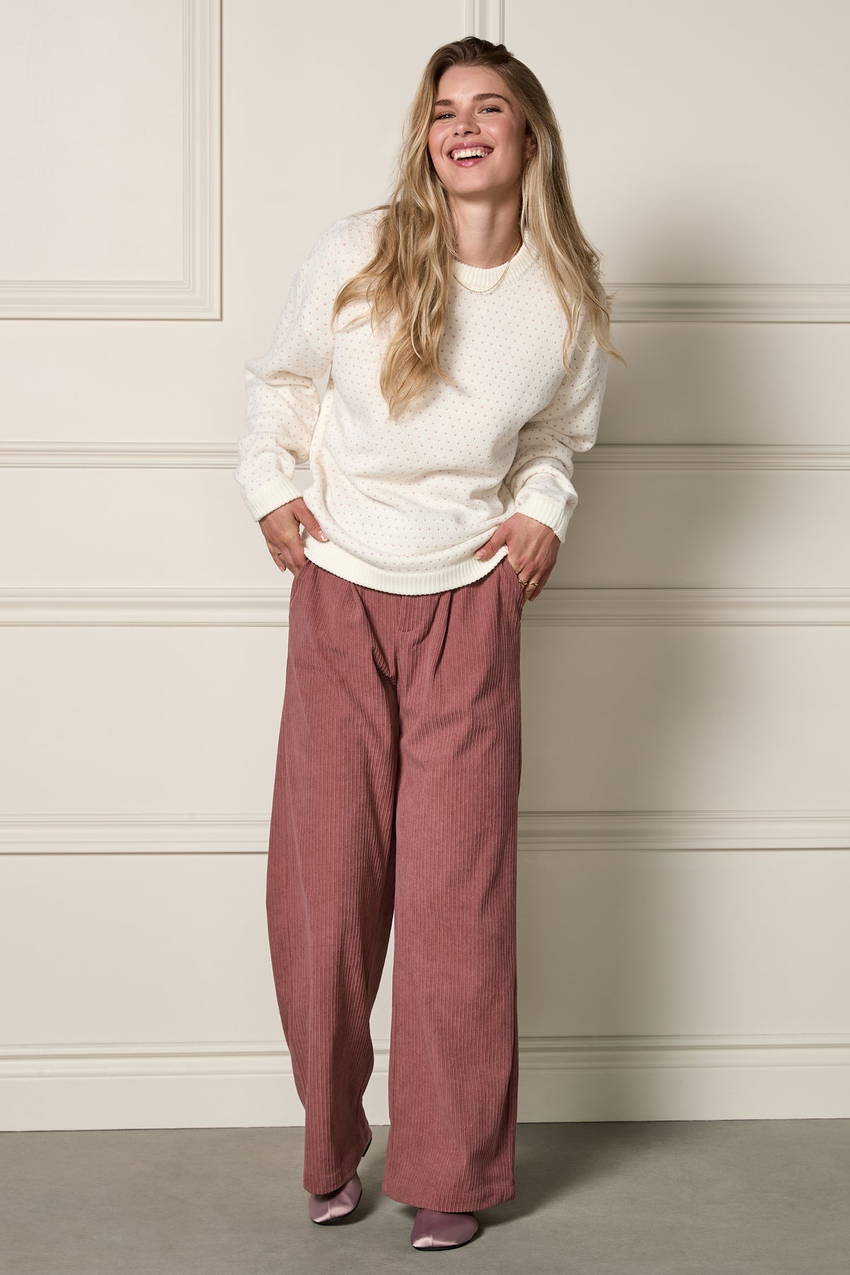 Ce chandail vous enveloppe de douceur et de chaleur pendant la saison froide avec son motif de micro cœurs discrets.