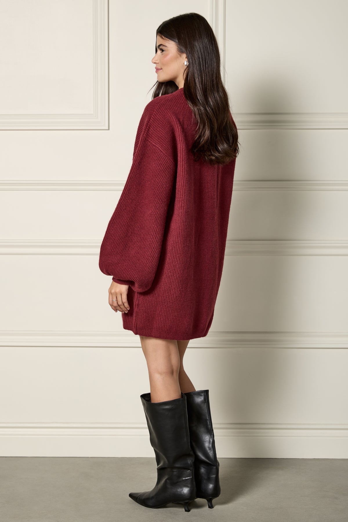 Adoptez un look tendance avec cette robe courte ample en tricot épais, agrémentée de manches ballon pour un style élégant et moderne.