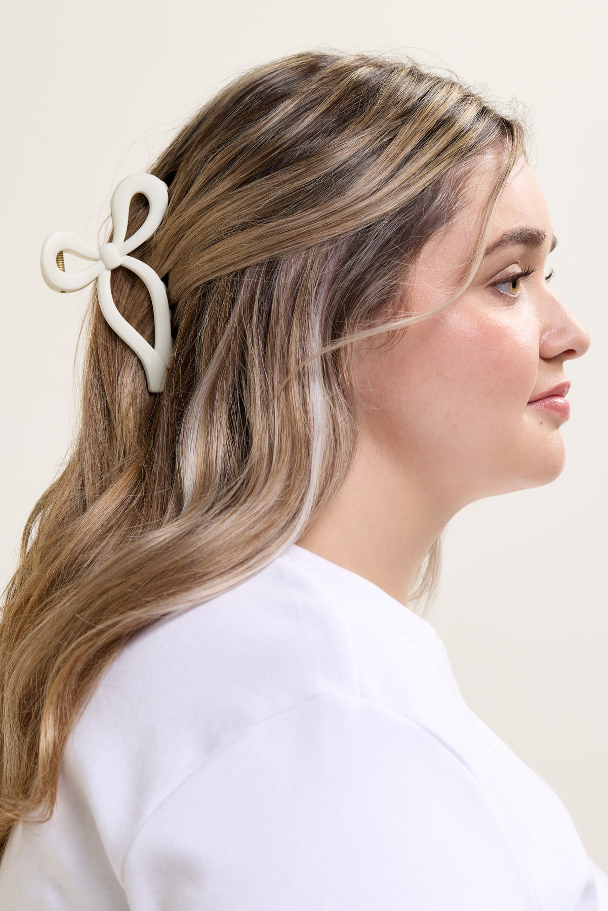 - Matte white hair clip