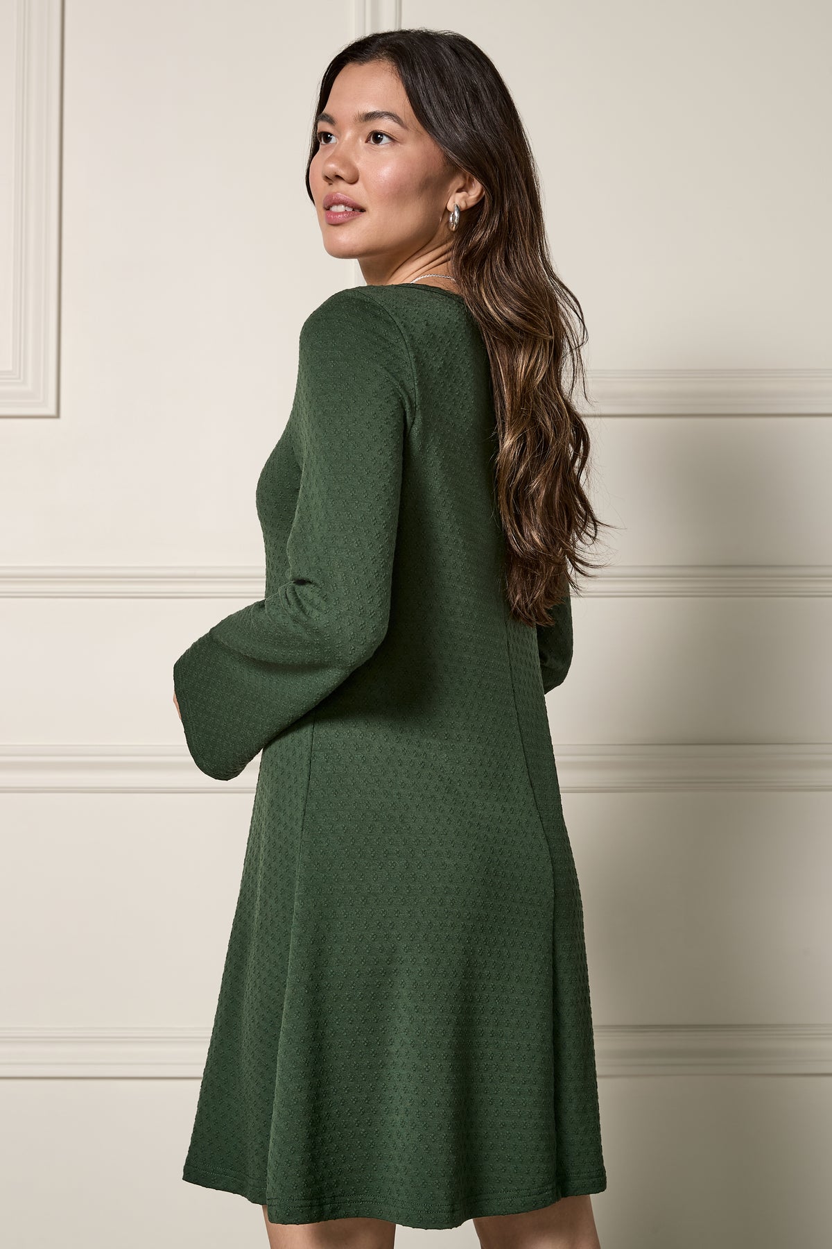 This short dress with flared sleeves in textured fabric adds a touch of lightness and charm to your wardrobe.