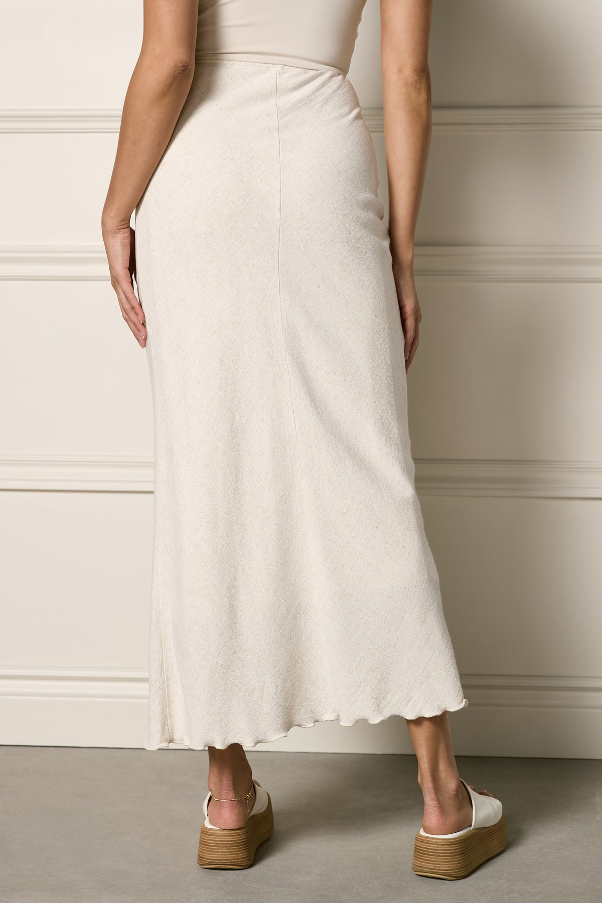 A comfortable and feminine skirt with a chic bow and embroidery at the waist.