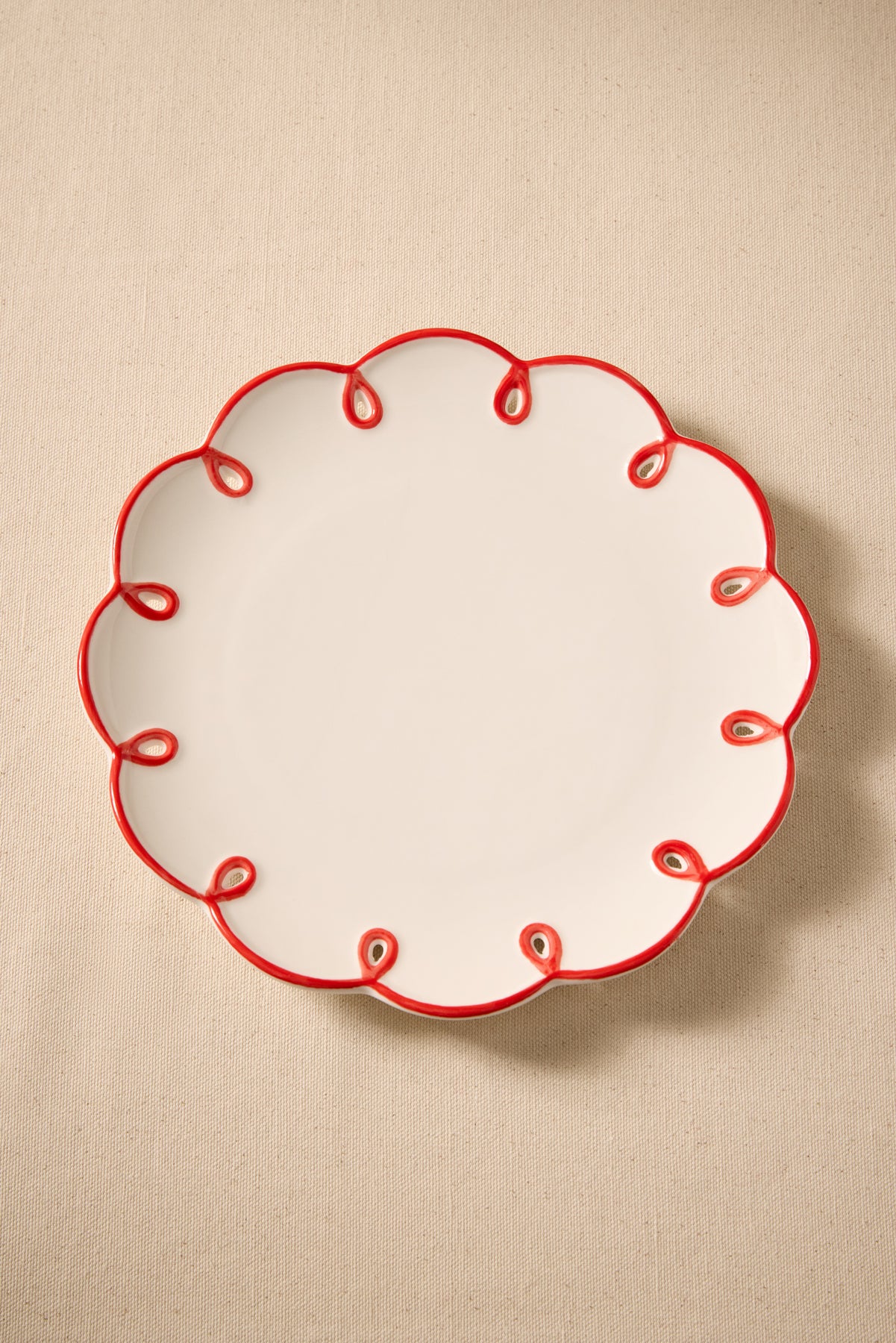 Apportez une touche festive à votre table avec cette assiette rouge au rebord délicatement festonné rouge.
