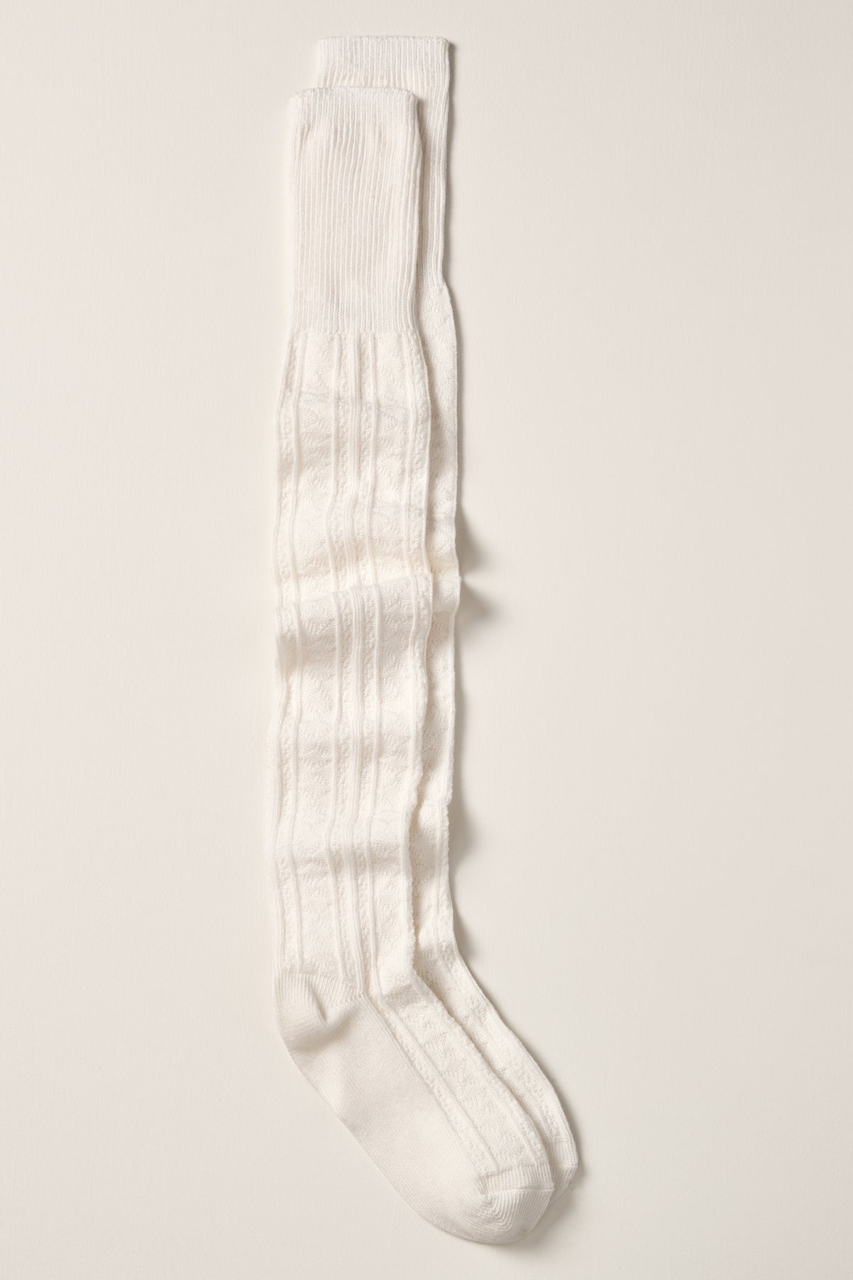 Bas genou à mailles texturées qui transformeront vos tenues d’automne. Leur hauteur et leur texture les rendent parfaits dans une botte haute ou avec une jupe !