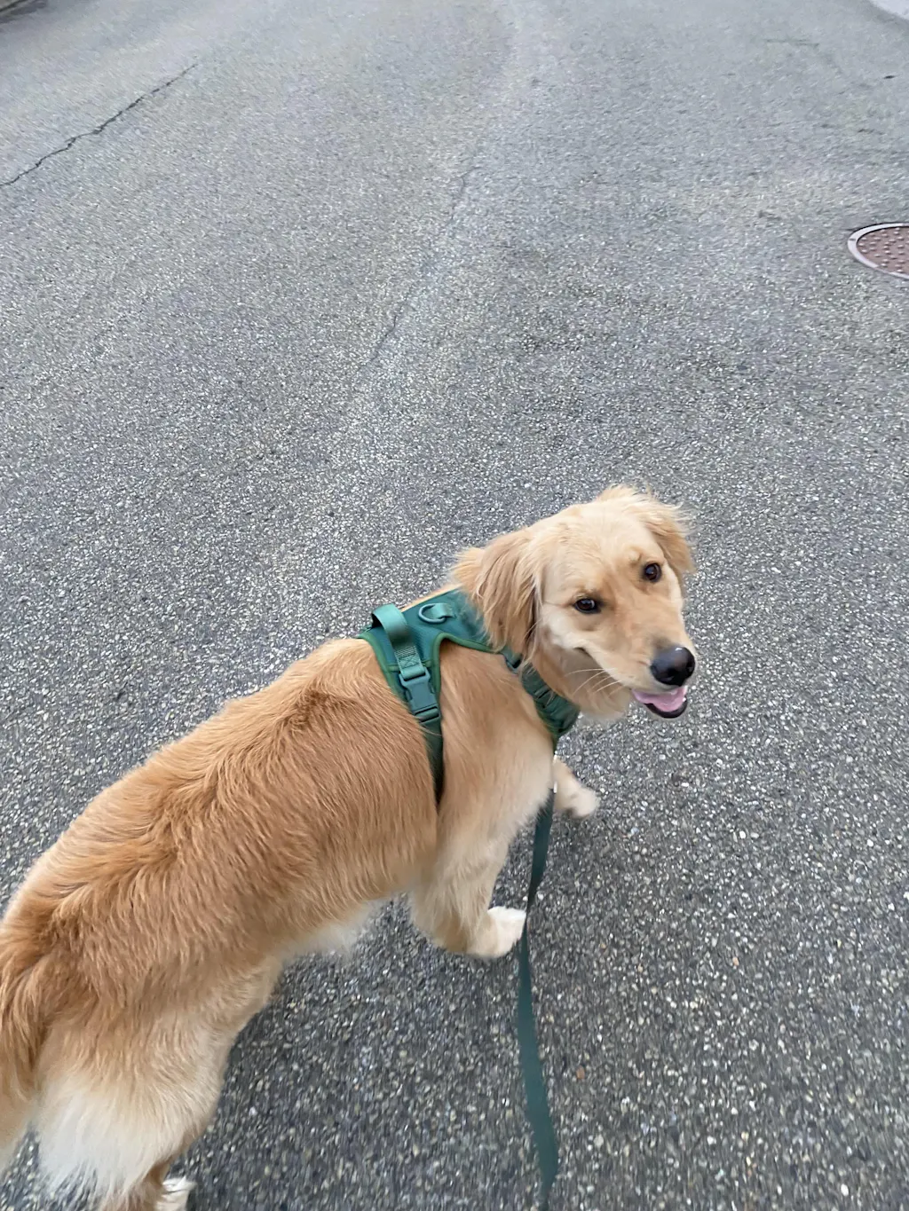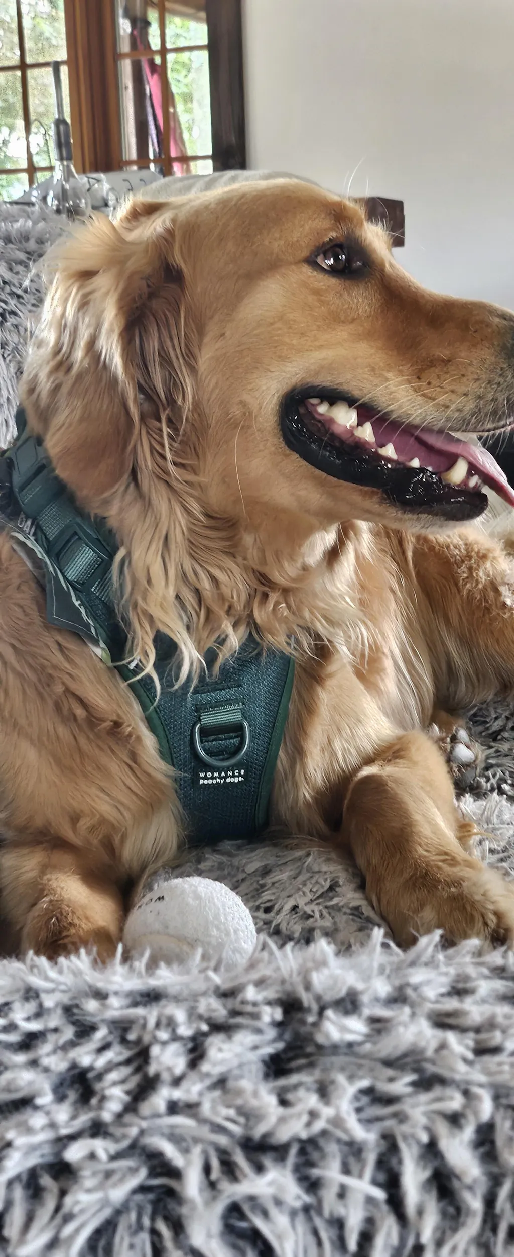 - Rofi, Golden Retriever de 80 livres porte le harnais dans le large.
