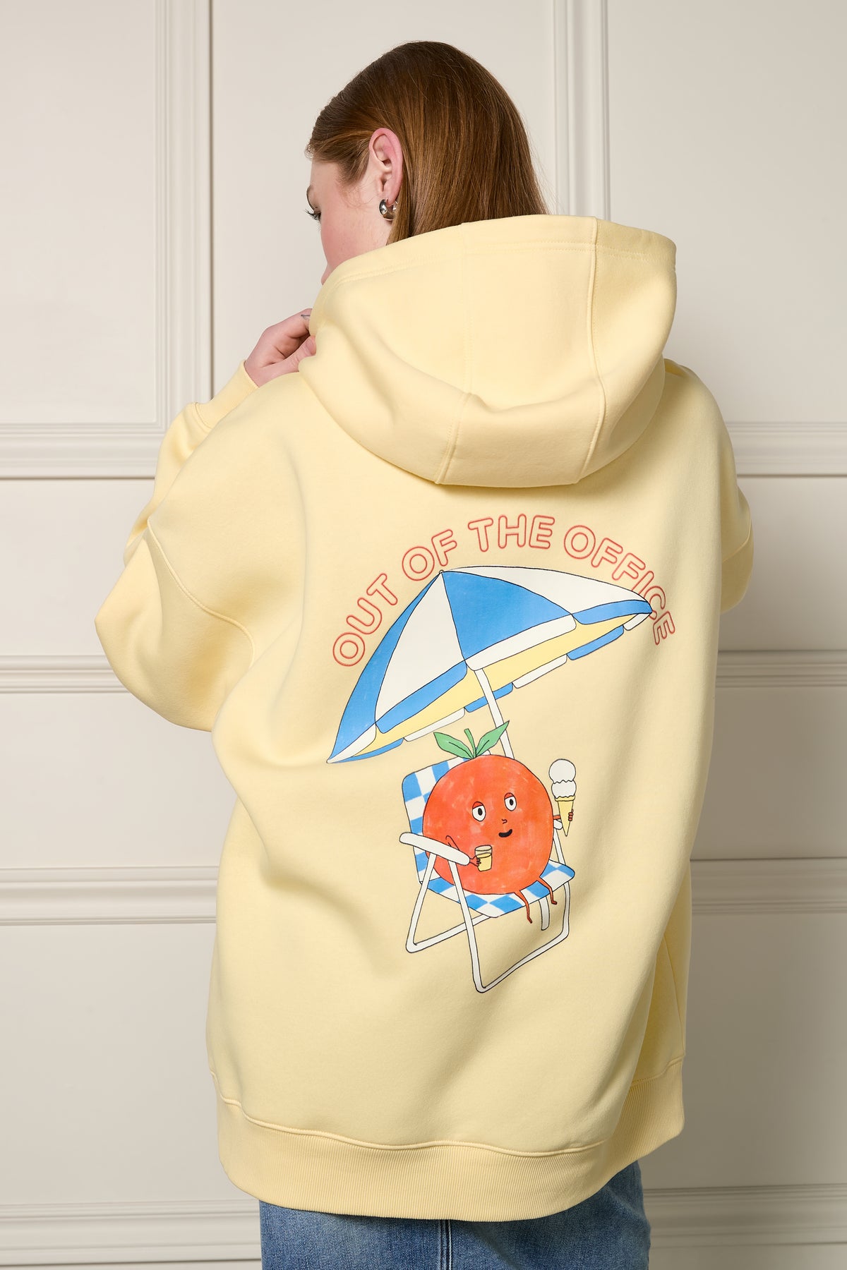 Le parfait chandail à capuchon ample avec imprimé de Kenny la tomate en vacances. Parfait pour la saison et les journées plus fraîches et que dire de son confort absolu!
