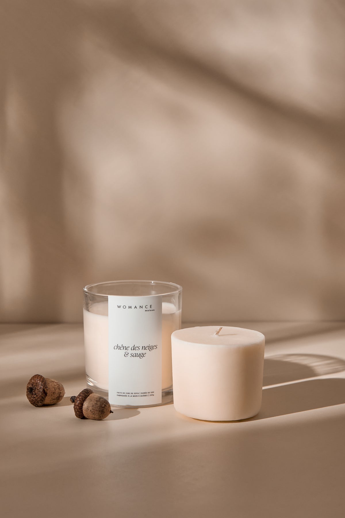 Découvrez la recharge à chandelle chêne des neiges et sauge, le parfait compagnon pour l'hiver! L'agréable odeur de sauge et de chêne blanc vous enveloppera, créant une ambiance chaleureuse et apaisante. Idéal pour se détendre après une longue journée. Faites de votre maison un havre de paix avec cette odeur unique.