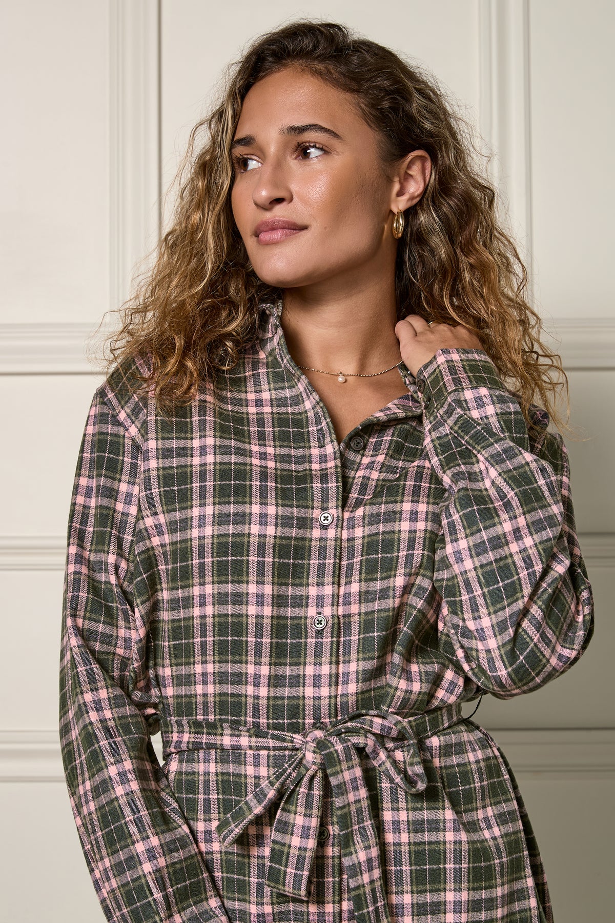 Adoptez un look automnal plein de charme avec cette robe à ceinture classique. Confortable et élégante, elle souligne la taille pour une silhouette flatteuse. Cette robe est parfaite pour les journées fraîches où style rime avec simplicité.