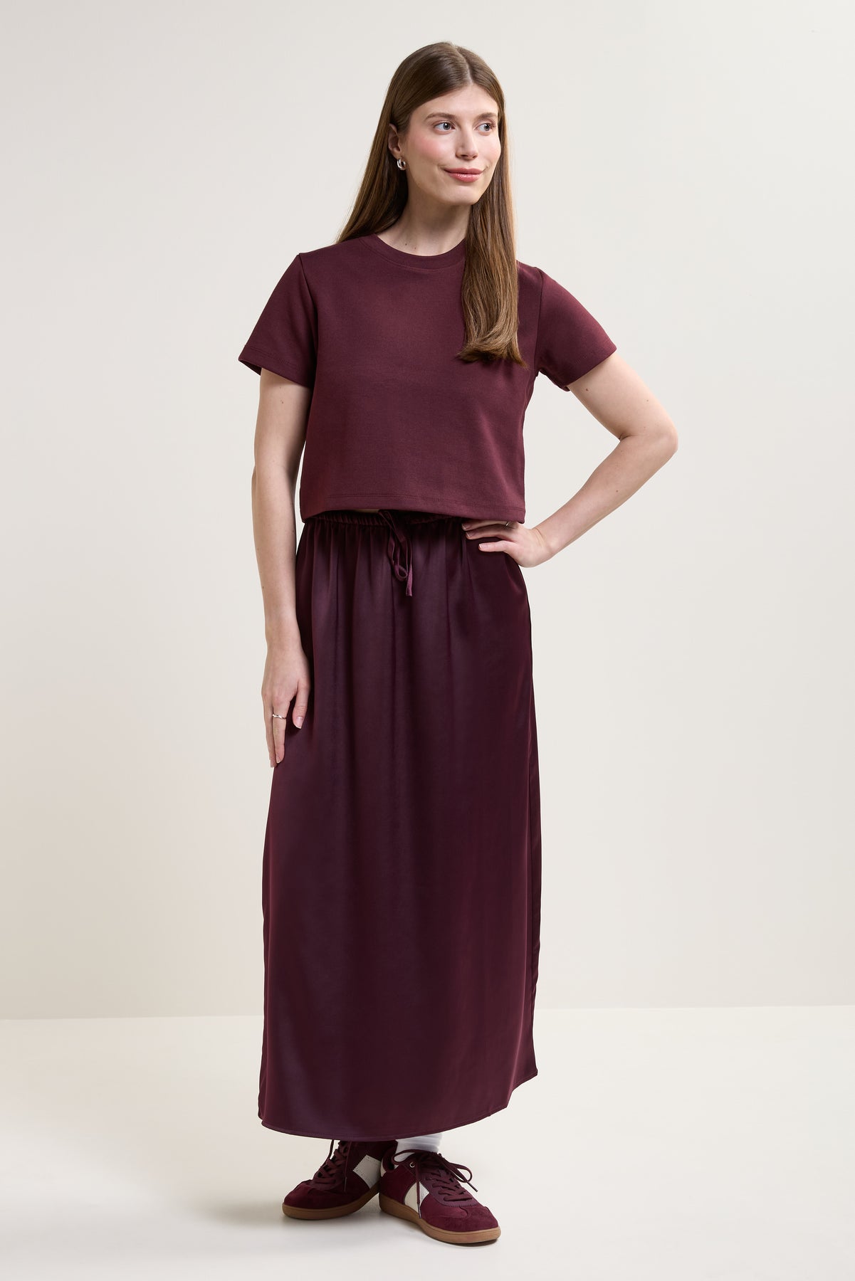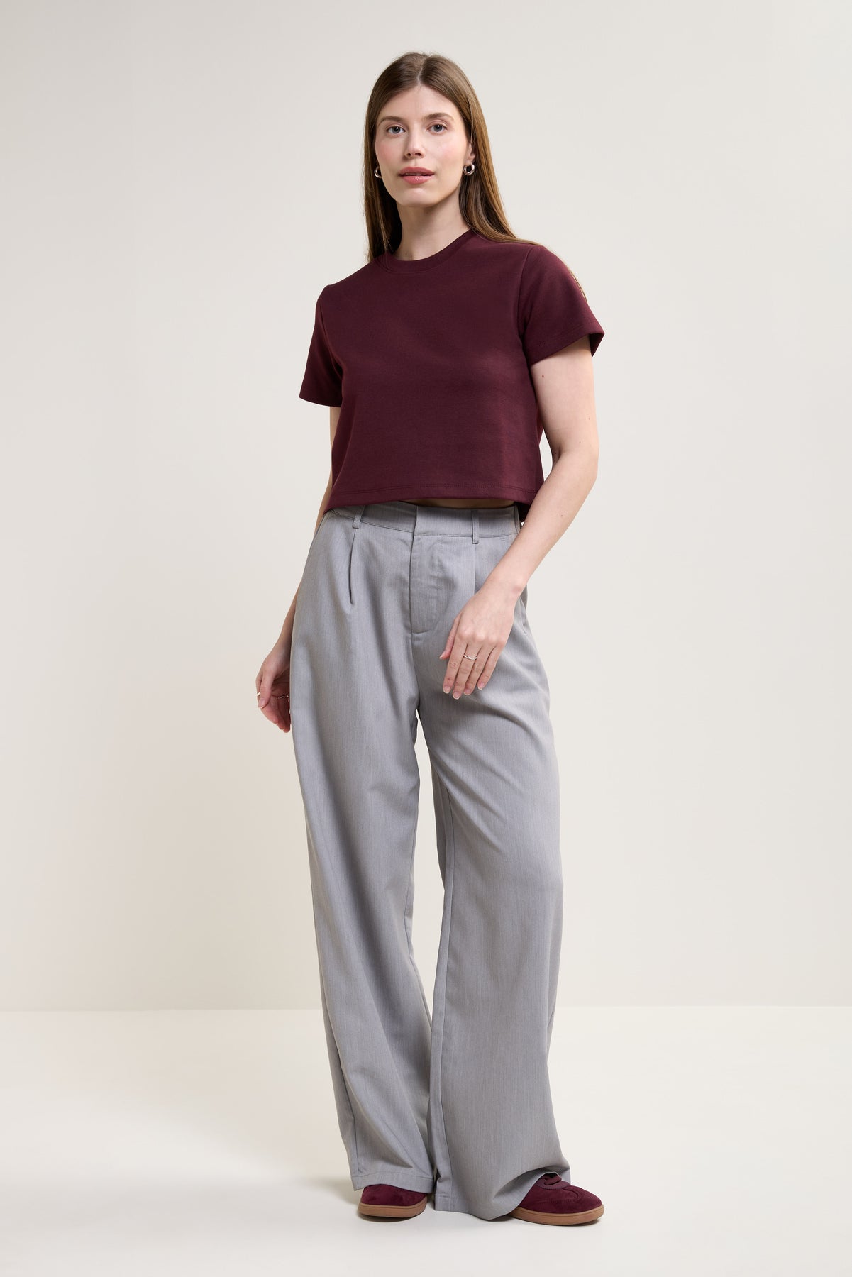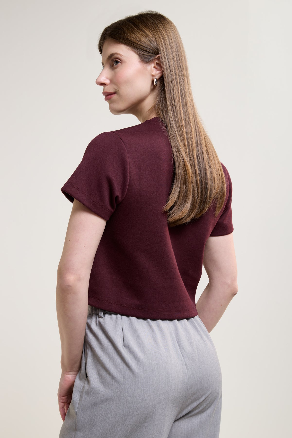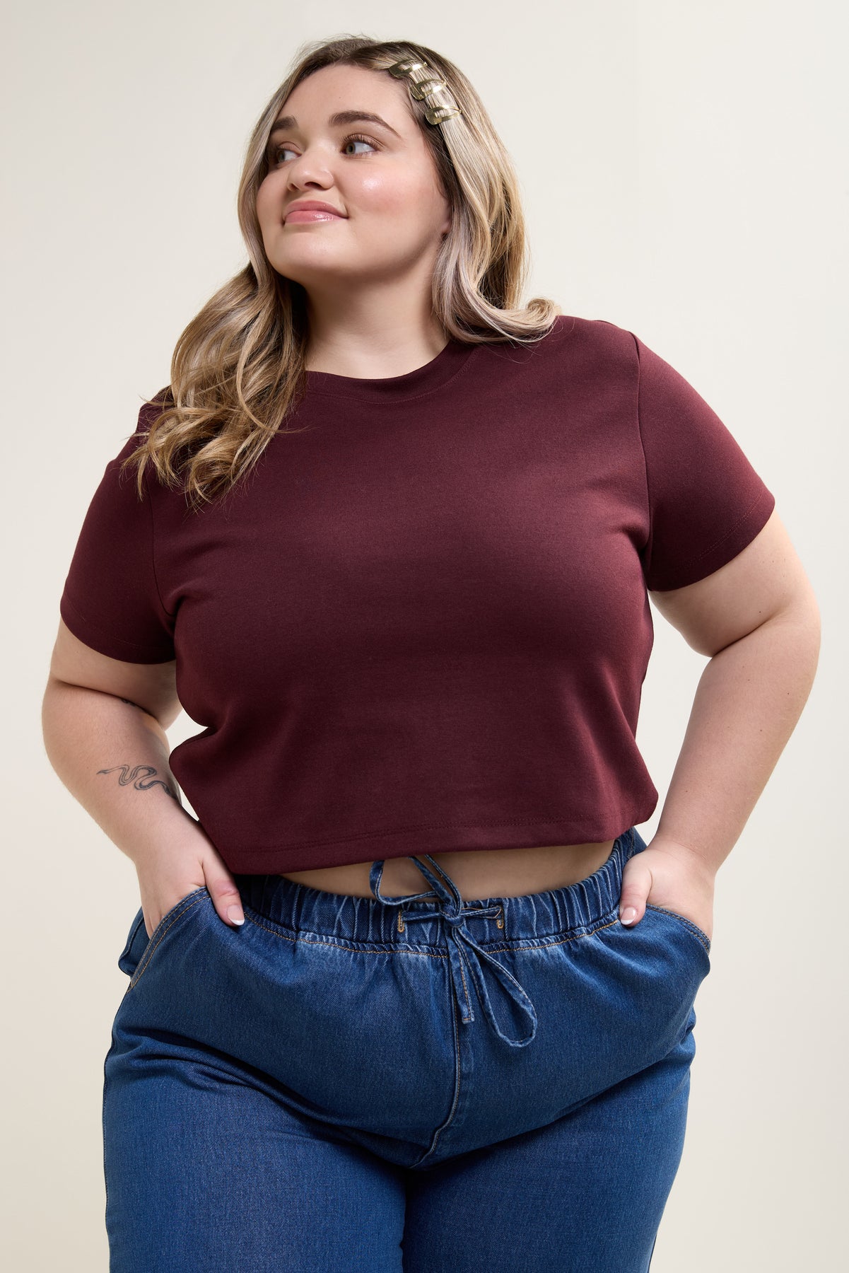 Ce t-shirt court légèrement ample se porte facilement avec un jean, un pantalon taille haute ou une jupe pour un look simple et actuel. Sa longueur écourtée en fait une bonne base à agencer avec les couleurs de saison, autant pour le quotidien que pour une tenue plus soignée.